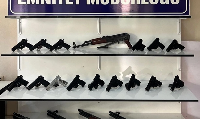 Ev, iş yeri ve araçlardaki aramalarda, yasa dışı yollarla temin edildiği belirlenen 1'i kalaşnikof 5 tüfek, 15 tabanca, bu silahlara ait çok sayıda mermi ve kartuş ile bir miktar uyuşturucu bulundu.