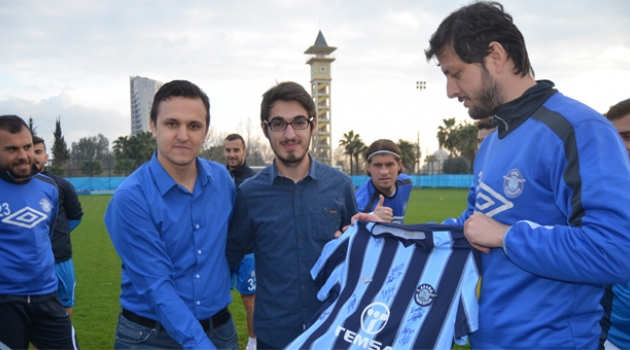 Adana Demirspor’un Passolig alan 23 bininci taraftarı Hakan Biden’e mavi-lacivertli futbolcular imzalı forma hediye etti.
