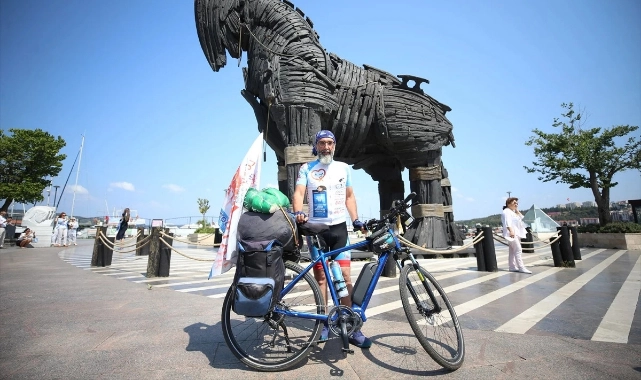 Yücel, kordondaki Troya Atı önünde gazetecilere yaptığı açıklamada, geçen yıl "Her Pedal Bir Umut Olsun" temasıyla yaptığı turu, Çanakkale'den tekrar başlattığını söyledi.