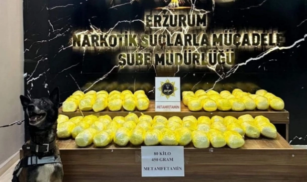 İl Emniyet Müdürlüğünden yapılan açıklamaya göre, Narkotik Suçlarla Mücadele Şube Müdürlüğü ekiplerinin, narkotik dedektör köpeği "Magnum" desteğinde yaptığı operasyonda, 80 kilo 450 gram sentetik uyuşturucu ele geçirildi.
