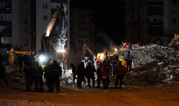 Çukurova ilçesi Güzelyalı Mahallesi'ndeki Hasan Alpargün Apartmanı'nın enkazında AFAD, UMKE, 112 Acil Sağlık, polis ve jandarma ekipleri çalışma yürütüyor.