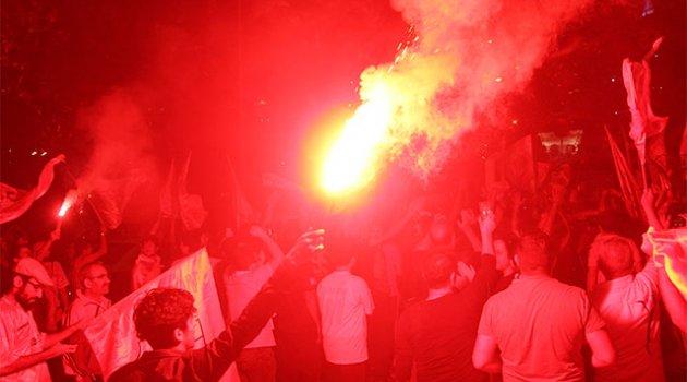 Tesis önünde taraftarların şampiyonluk kutlaması uzun süre devam etti.
