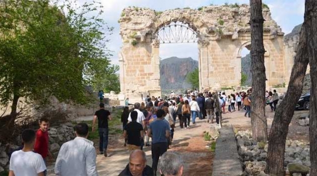 Yapılan kazılarla açığa çıkan Antik Kenti gezen ziyaretçiler, Çukurova Üniversitesi Fen-Edebiyat Fakültesi Arkeoloji Bölümü Öğretim Üyesi Yrd. Doç. Dr. Fatih Gülşen’den tarihi kalıntılarla ilgili bilgi aldı.