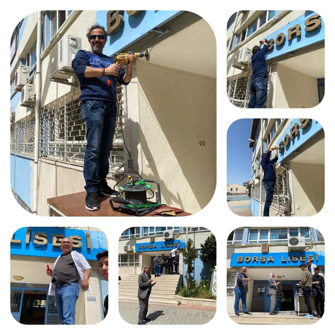 ADANA(GÜNAYDIN)-Adana’nın köklü liselerinden olan ve çok sayıda ünlü ismi yetiştiren Adana Borsa Lisesi’nin her şeyi olan Mavi Tabelanın bakımı yapılarak yerine asıldı. Borsa Lisesi denilince ilk akla gelen isimlerden Tarih öğretmeni Faruk Demirel, “BORSA için HER ŞEY' olan 'MAVİ TABELA'mızın bakımına katkılarından dolayı Dernek Başkanımız Sayın Adem Sungurtekin'e teşekkür ederiz” dedi.