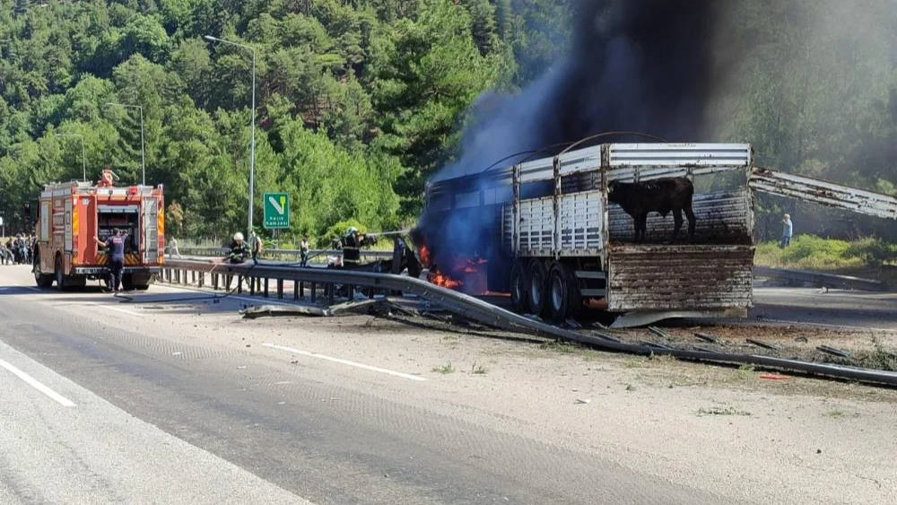 Yangın, Adana-Pozantı otoyolu Akçatekir mevkiinde meydana geldi. Sürücüsünün ismi henüz öğrenilemeyen 63 ADE 887 plakalı büyükbaş hayvan yüklü bir tırda, henüz bilinmeyen bir sebeple yangın çıktı. Sürücü, tırın dorse kapağını açarak büyükbaş hayvanları otoyola indirip, telef olmalarını engelledi.