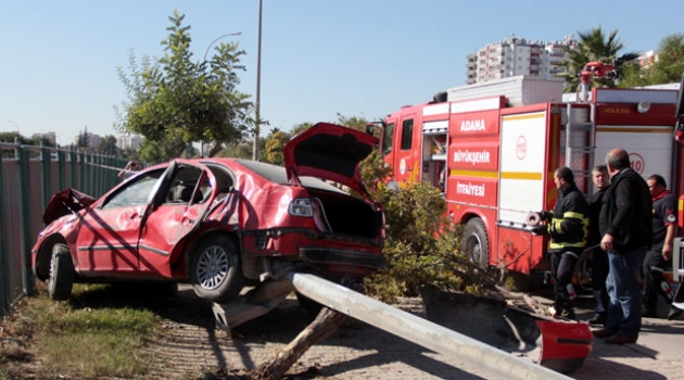 Hurdaya dönen otomobilin sürücüsü yaralı olarak kurtuldu.Kaza, Seyhan ilçesi Fatih Mahallesi Kıyıboyu Caddesi’nde meydana geldi.