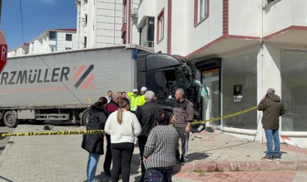 Tekirdağ'ın Çorlu ilçesinde direksiyon başında fenalaşan sürücünün kullandığı tır bir binanın alt katında bulunan dükkana çarparak durabildi.