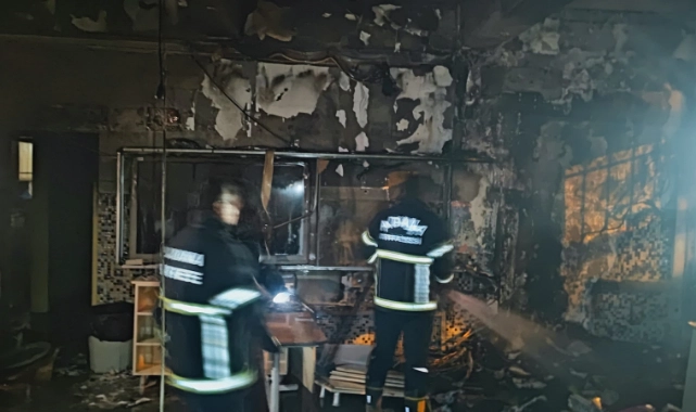 İtfaiye ekiplerince söndürülen yangın sınıfta hasara neden oldu.