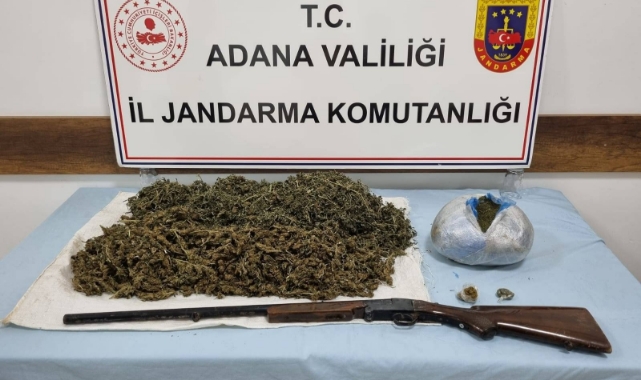 Adana'da bir eve düzenlenen operasyonda 2 kilo 500 gram esrar ve ruhsatsız av tüfeği ele geçirildi, 1 şüpheli gözaltına alındı.