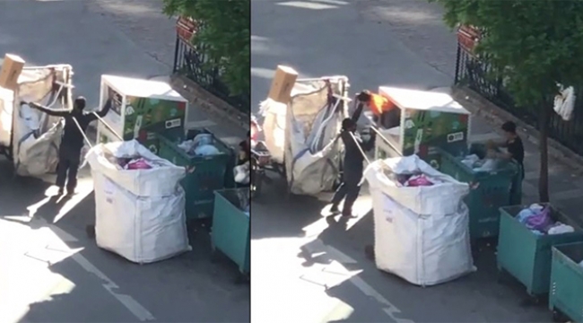 Kağıt toplayan şahıs giysi kumbarasından içeri bir çocuğu girdirdi. İçerideki çocuğun koyduğu eşyaları şahıs kapaktan alarak el arabasına koydu. O anlar cep telefonu kamerasına saniye saniye yansıdı. Apartmanda yaşayan bir kişinin cep telefonu kamerasına saniye saniye yansıdı.