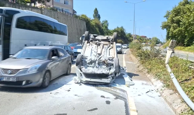 Trabzon'un Araklı ilçesinde devrilen hafif ticari aracın sürücüsü yaralandı.