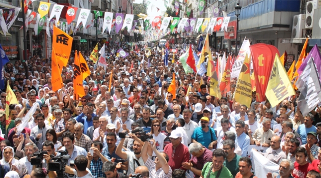 "Çünkü onların amacı Diyadin’de de eş genel başkanımızın evine polis gönderdiklerinde onlarca seçim büromuza saldırı yaparken de arkadaşlarımızı gözaltına alırken de tek amaçları vardı HDP’nin, gidişatını durdurmak, yükselişini durdurmaktı. Ama biz dün olduğu gibi bugünde ve 7 Haziran’da sonuçlar kesinleşinceye kadar ve sonra da barış irademizi halkların kardeşliğini halkların birlikteliğini haykırmaya devam edeceğiz. Tek tesellimiz hiçbir arkadaşımızın can kaybı olmaması onlar amacına ulaşamadılar. Ama bizim buna vereceğimiz cevap artık çalışmalarımızı ikiye, üçe katlayarak gerçekten seçim güvenliğini ortadan kaldıranlara cevap vermektir."