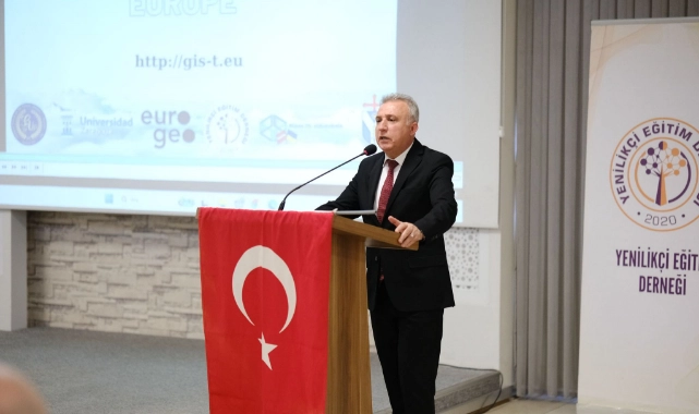 Etkinlik programında söz alan Esri Türkiye Eğitim Koordinatörü Utku ŞAHİN, CBS'nin eğitim faaliyetlerinde kullanımının önemi, Esri Türkiye'nin öğretmelere yönelik eğitim fırsatları ve okullara sağlanan lisans destekleri konusunda bir sunum gerçekleştirdi.