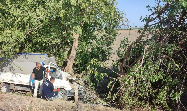 Ağaca çarparak duran kamyonetteki sürücü Karaca ile yanındaki Mustafa Öztürk ve oğlu Gökçen Öztürk araçta sıkıştı.