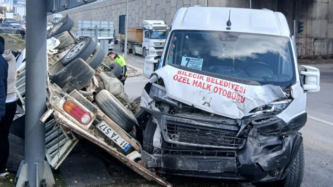 Kaza; Bilecik-Osmaneli-Sakarya kara yolu Bilecik Eğitim ve Araştırma Hastanesi kavşağında meydana geldi. Alınan bilgilere göre; hastane alt geçidinden hastane istikametine seyir halinde iken kırmızı ışık ihlali yapan İsmail K. idaresindeki 11 TA 517 plakalı kamyonet ile üniversite istikametinden kent merkezine seyir halindeki Necdet K. idaresindeki 11 HO 1076 plakalı halk minibüsü ile çarpıştı. Meydana gelen trafik kazasında11 TA 517 plakalı kamyonet takla atarak durabilirken, sürücüsü yaralandı. Yaralı olay yerine gelen acil servis ekiplerince yapılan ilk müdahalenin ardından Bilecik Eğitim ve Araştırma Hastanesine kaldırıldı.