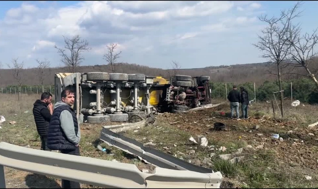 Kuzey Marmara Otoyolu Işıklar mevkisinde seyir halindeki İsmail Akar idaresindeki 34 FAU 909 plakalı hafriyat kamyonu, henüz belirlenemeyen nedenle kontrolden çıkarak yol kenarındaki bariyerlere çarptı. Çarpmanın etkisiyle devrilen kamyonun sürücüsü araç içinde sıkıştı. Haber verilmesi üzerine olay yerine itfaiye ve sağlık ekipleri sevk edildi.