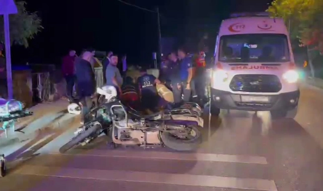 Sürücünün köpeğe çarpmamak için manevra yapmasının ardından devrilen motosikletteki polis memurları Ü.Ö. ve F.Ç. yaralandı.