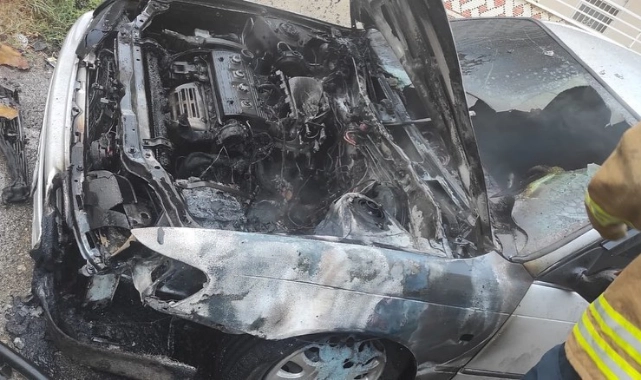 Olay yerine gelen ekipler, alevlere müdahale etti. Yanan araçta hasar meydana geldi.