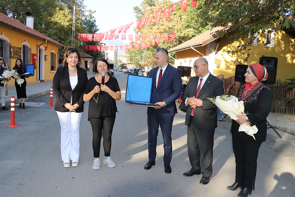 Başkan Çay, açılış sonunda kültür evlerinin ortaya çıkmasında emeği geçen Senem Açıkgöz ve Zeynep Karaaslan’a teşekkür ederek çiçek ile plaket hediye etti.