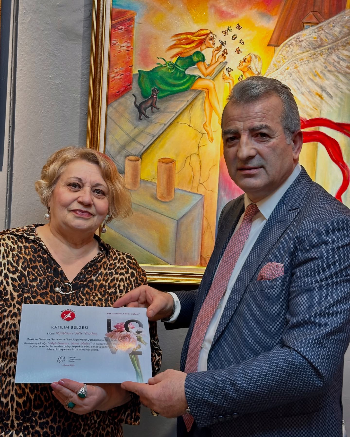 Ankara’da sanatseverlerin beğenisine sunulan serginin açılış sevincini hep beraber yaşarken sevgi gününde yüzünüzden gülücükler, gönlünüzden sevgi eksik olmasın. Mutluluğununuz ömür boyu devam etmesini, yaşantınızda hiçbir şeyin sizi üzmemesini ve sevgi gününüzün sanat dolu geçmesini dileriz.