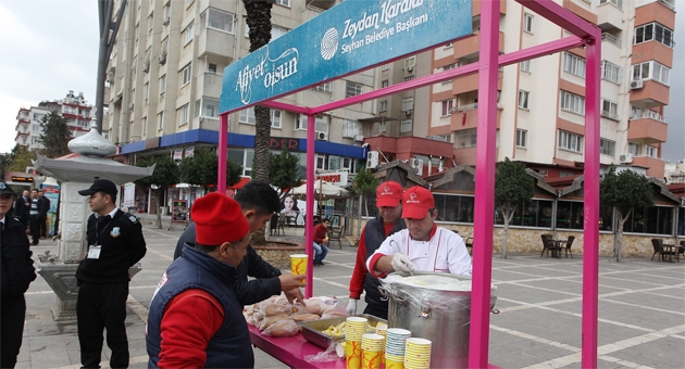 Her sabah 07.00 ile 08.00 saatleri arasında Çukurova Üniversitesi YADİM durağı, Gazipaşa Parkı önü, Dörtyol Ağzı ve Baraj Yolu Duygu Kafe önünde 3 bin kişiye sıcak çorba dağıtımı yapılıyor.