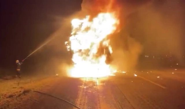 Muğla’nın Seydikemer ilçesinde seyir halindeyken alev alan tır kullanılamaz hale geldi.