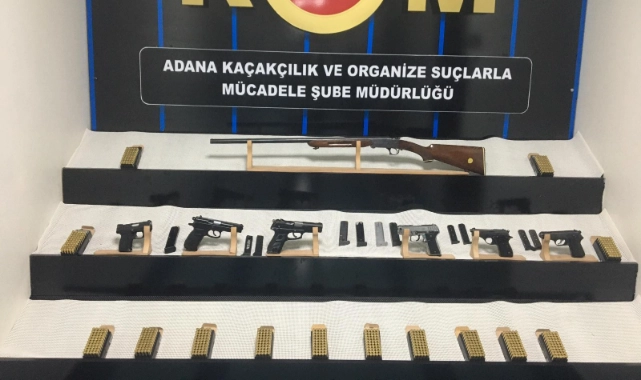 İl Emniyet Müdürlüğü Kaçakçılık ve Organize Suçlarla Mücadele Şubesi ekipleri, merkez Seyhan ilçesi Yeşiloba Mahallesi'ndeki bir iş yeri ile Yüreğir ilçesi Başak Mahallesi'ndeki bir evde ruhsatsız silahlar bulunduğunu belirledi.