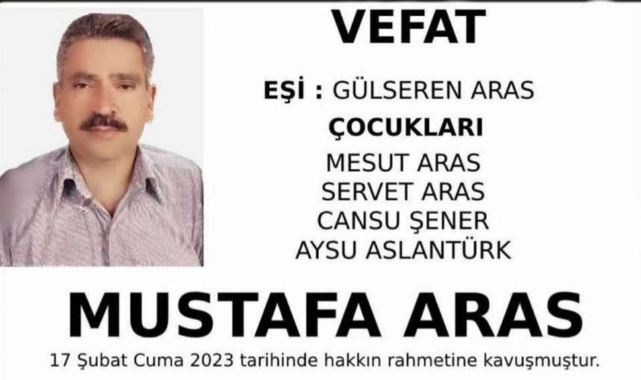 ''Değerli dostum kardeşim Ortağım Mesut Aras'ın kıymetli Babasının ani vefatı bizleri derinden üzmüştür. Merhum Mustafa Aras amcamıza Allah'tan rahmet Başta Çocukları olmak üzere yakınlarına ve sevenlerine başsağlığı diliyorum.