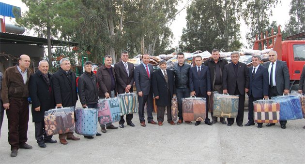 Oda başkanları tarafından Suriyelilere verilmek üzere alınan 500 battaniye Cansa Tarım Makinaları Fabrikası’nda toplandı. Burada oda başkanları, Belediye Başkanı Alemdar Öztürk, Özmaya Genel Müdürü Oktay Demirci’nin katılımıyla battaniyeler Suriyeli sığınmacılara dağıtılmak üzere mahalle muhtarına teslim edildi.