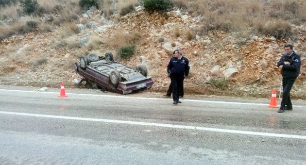 Edinilen bilgiye göre, Kozan-Feke karayolu Sırelif mevkisinde Kemal Tüzün’ün kullandığı 61 FH 289 plakalı otomobil, yolun kaygan olması nedeniyle sürücünün direksiyon hakimiyetini kaybetmesi sonucu takla attı. Sürücü Tüzün, ters dönen otomobilden burnu kanamadan sağ kurtuldu. Kaza yerinde trafik polisi önlem alırken, otomobil çekici yardımı ile yoldan kaldırıldı.