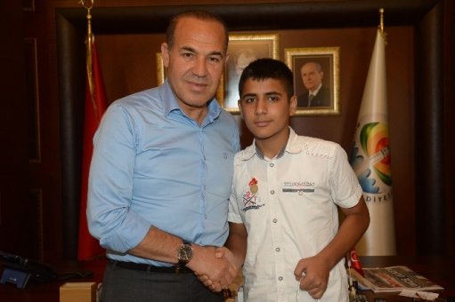 Adana Büyükşehir Belediye Başkanı Hüseyin Sözlü, Temel Öğretimden Ortaöğretime Geçiş Sınavı’nda (TEOG) Türkiye 1’incisi olan Cumali Kankılıç’ı makamında kabul etti. Başarısından dolayı Cumali Kankılıç ve ailesini tebrik eden Başkan Hüseyin Sözlü, öğrenciye çeşitli hediyeler verdi.