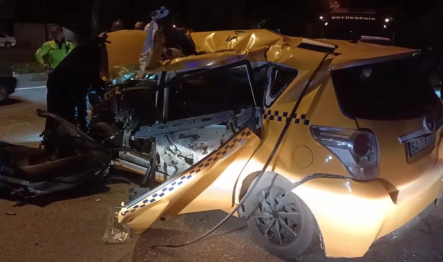 Sakarya'nın Pamukova ilçesinde ticari taksinin tıra çarpması sonucu 1 kişi yaralandı.