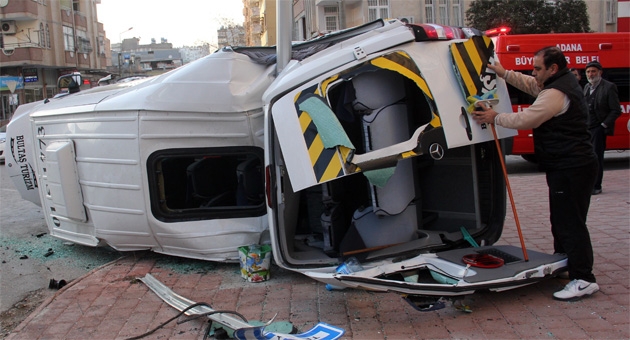 Edinilen bilgiye göre, Seyhan içesi Yeşilyurt Mahallesi’nde meydana gelen kazada, İsa Salim Şahin yönetimindeki 01 S 1773 plakalı servis minibüsü, Necip Fazıl Kısakürek Bulvarı’nda seyir halindeyken, İbo Osman Caddesi’nden bulvara çıkan Birkant Anıtkan’ın kullandığı 01 CIF 83 plakalı otomobil ile çarpıştı.