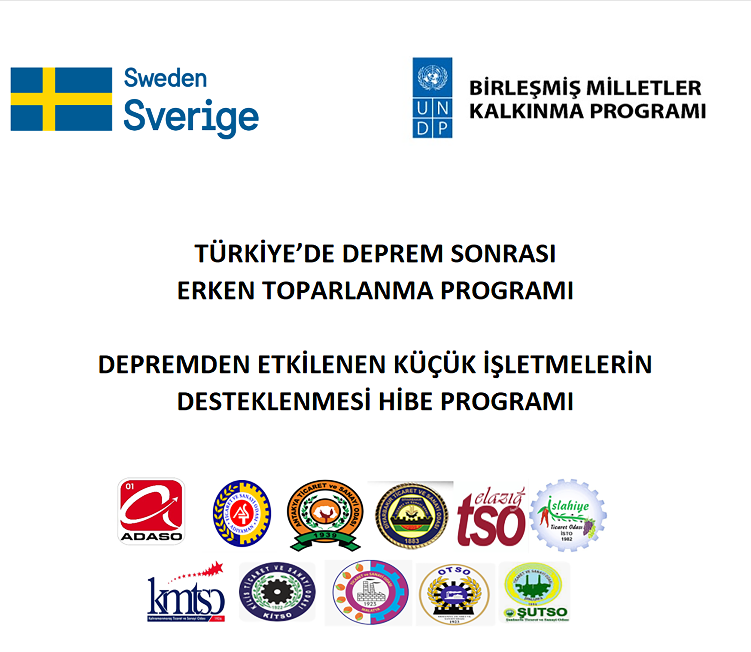 Birleşmiş Milletler Kalkınma Programı (UNDP), İsveç Hükümeti'nin sağladığı finansman desteğiyle depremden etkilenen 11 ildeki küçük işletmelerin desteklenmesi amacıyla bölgesel bir hibe programı başlattı. Program kapsamında Adana Sanayi Odası, Adıyaman TSO, Antakya TSO, Diyarbakır TSO, Elazığ TSO, İslahiye Ticaret Odası, Kahramanmaraş TSO, Kilis TSO, Malatya TSO, Osmaniye TSO ve Şanlıurfa TSO ile iş birliği yapılacak.
