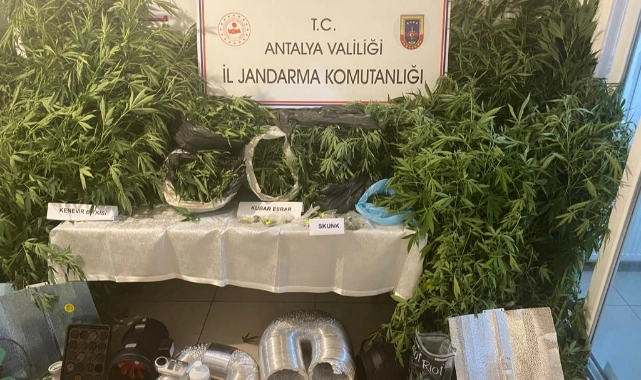 Ekiplerin belirlenen adreslere düzenlediği operasyonda, 950 gram esrar, 85 kök Hint keneviri, 59 skunk bitkisi, 10 kilo 140 gram skunk maddesi, 3 vantilatör, 8 mor ışık sistemi ve 1 öğütme makinesi ele geçirildi.