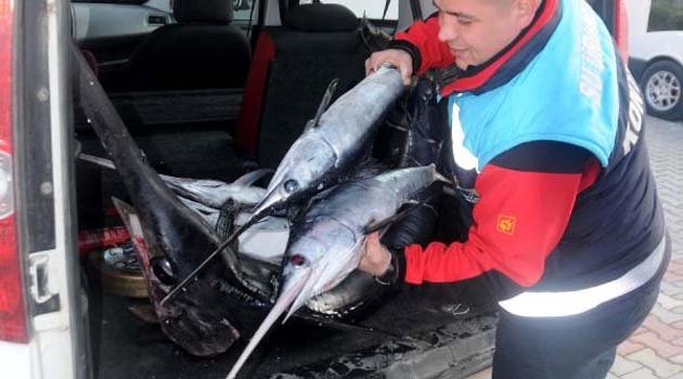 Yasağa rağmen avlanan 5 kılıç balığına el konuldu