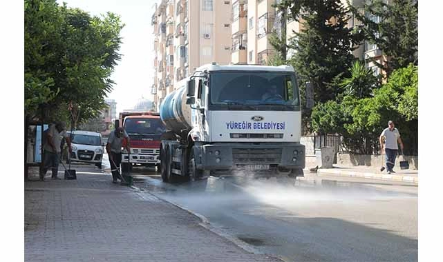 Yüreğir Belediyesi Temizlik İşleri Müdürlüğü, Kurban Bayramı öncesi ilçenin cadde ve sokaklarında genel temizlik çalışması yaptı.